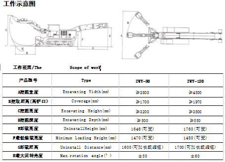 本机主要用于煤矿、非煤矿巷道的装载作业,设备适用于≤35°狭窄坡度巷道使用;